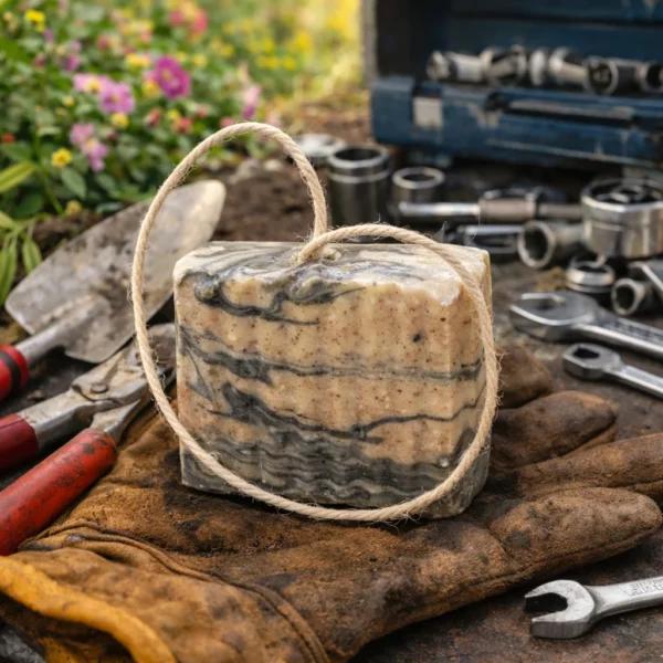 A: This bar is built for folks who need a serious scrub—gardeners, mechanics, makers, and anyone who works with their hands. It’s a rugged exfoliating mechanic soap with grit, grip, and a clean finish that won’t dry your skin out.
